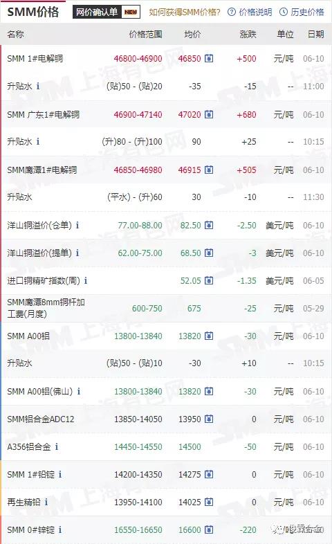 俊霖合金解读:6月10日有色金属行情